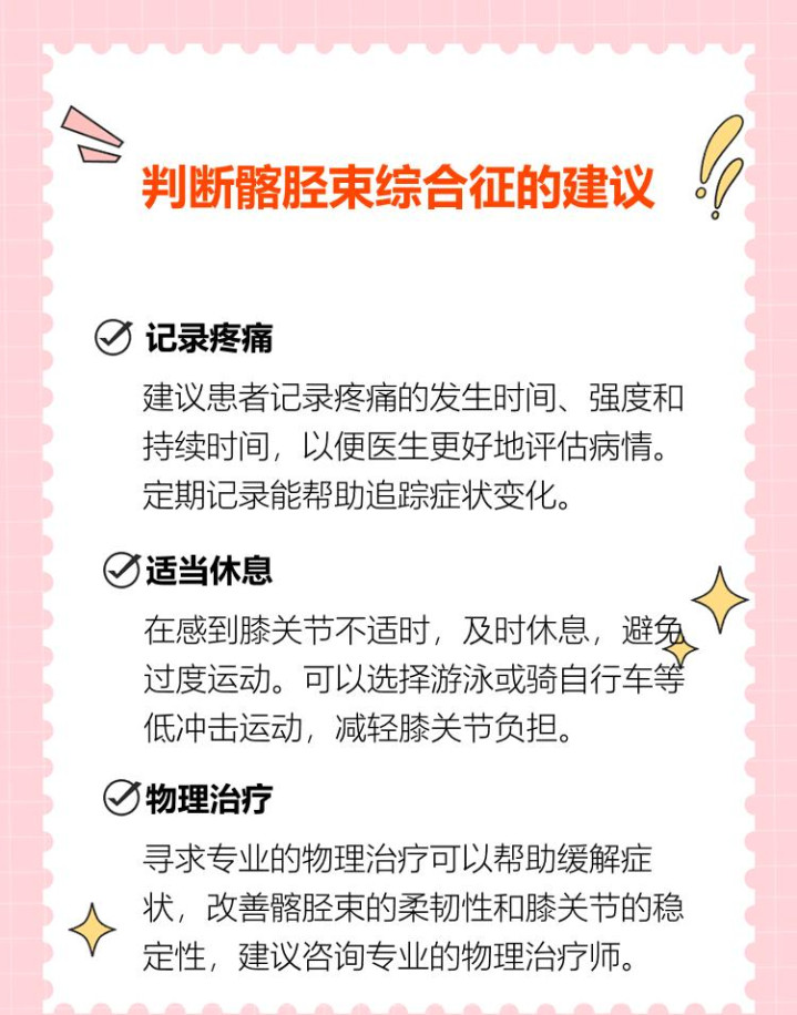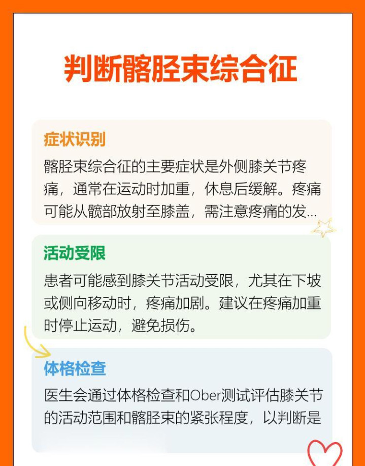 专科大夫的会诊最为可靠。通过Ober测试等专项检查,大夫大概准确评估髂胫束的垂死情状。当发现韧带过度紧绷或枢纽行为领域受限时,髂胫束详尽征的会诊基本就明确了。