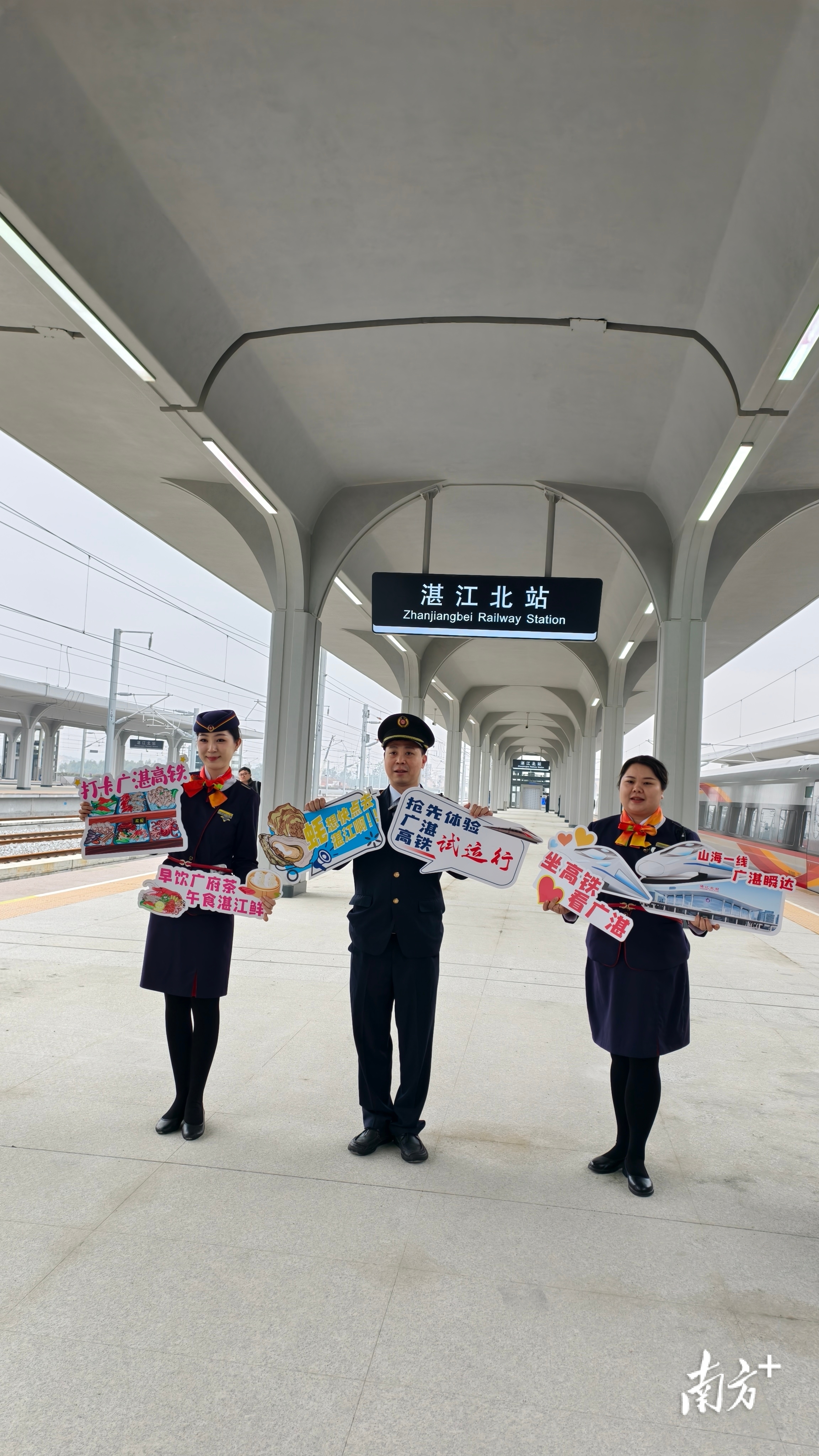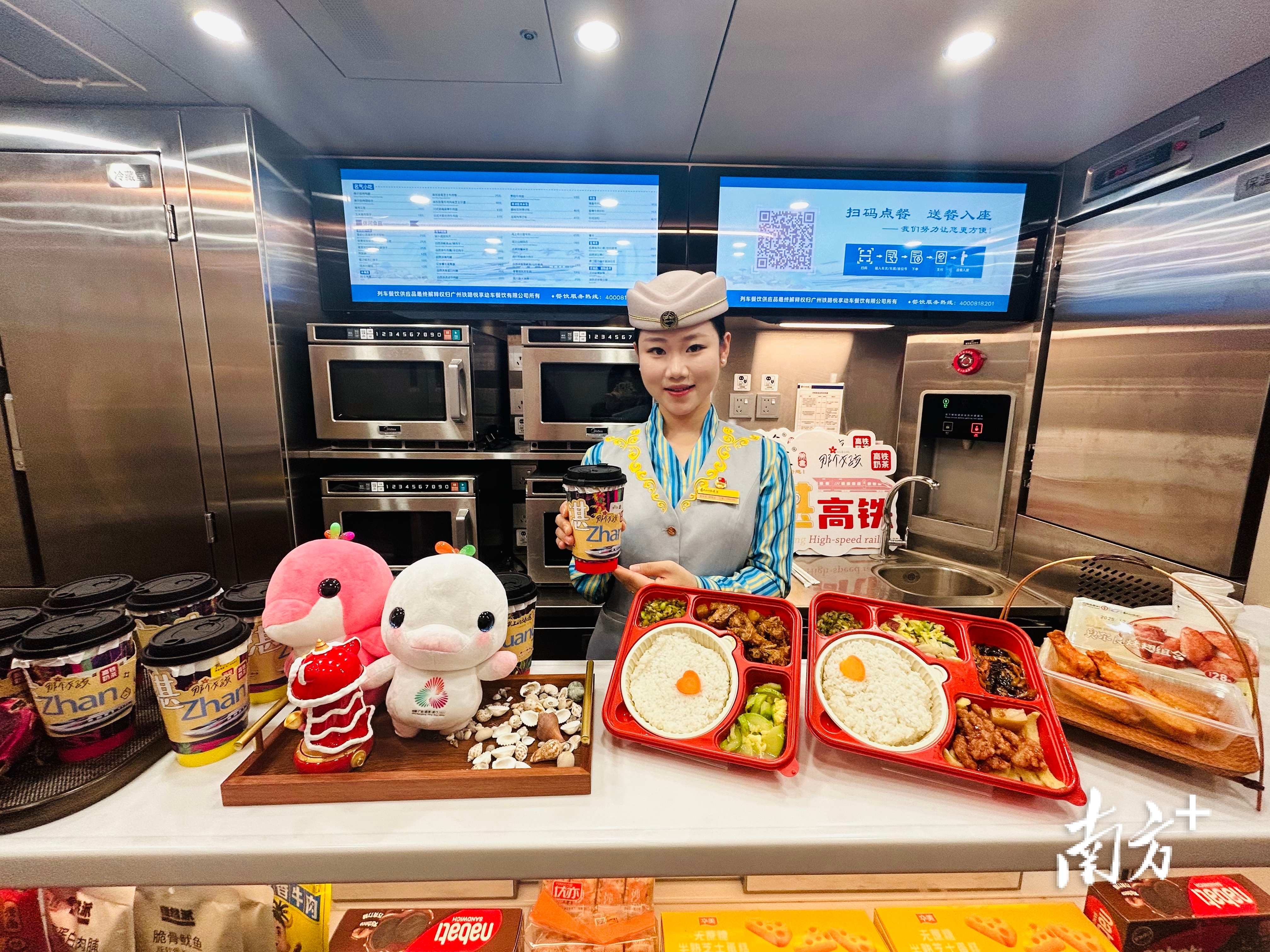 为广湛高铁提供优质餐饮,广州铁路悦享动车餐饮公司树立了全新的湛江北基地,并组建一支劳动娴熟、充满活力的乘务员戎行,力争于为游客提供贴心优质的劳动体验。饮食上以平价实惠为导向,推出多款20元至40元区间的特质餐食,如黄焖鸡、菠萝咕噜肉,既能体现湛江物产丰饶,又能展现当地饮食文化;茶饮方面,皆集湛江丰富生果资源和滨海风情,推出咸味鲜果茶系列饮品——咸黄皮津津茶和霸气凤梨茶,让游客驶往粤西山海的路线中,便能发轫试吃到湛江的当然水灵风范。