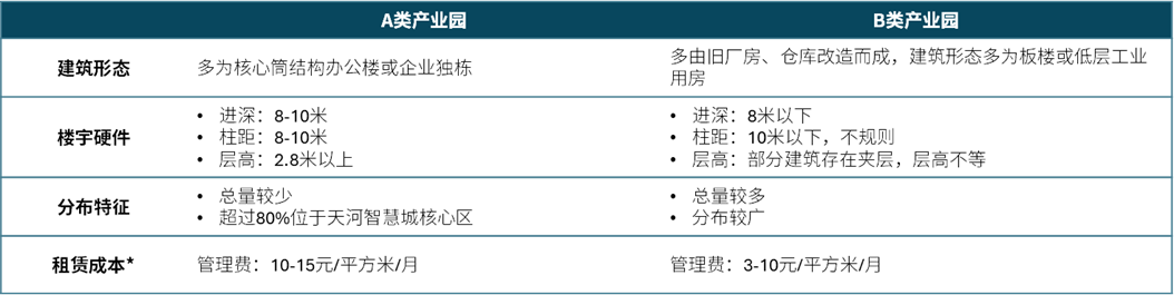 河汉和琶洲产业园物业分类 注: *解决费不包含能源用度 受访者 供图